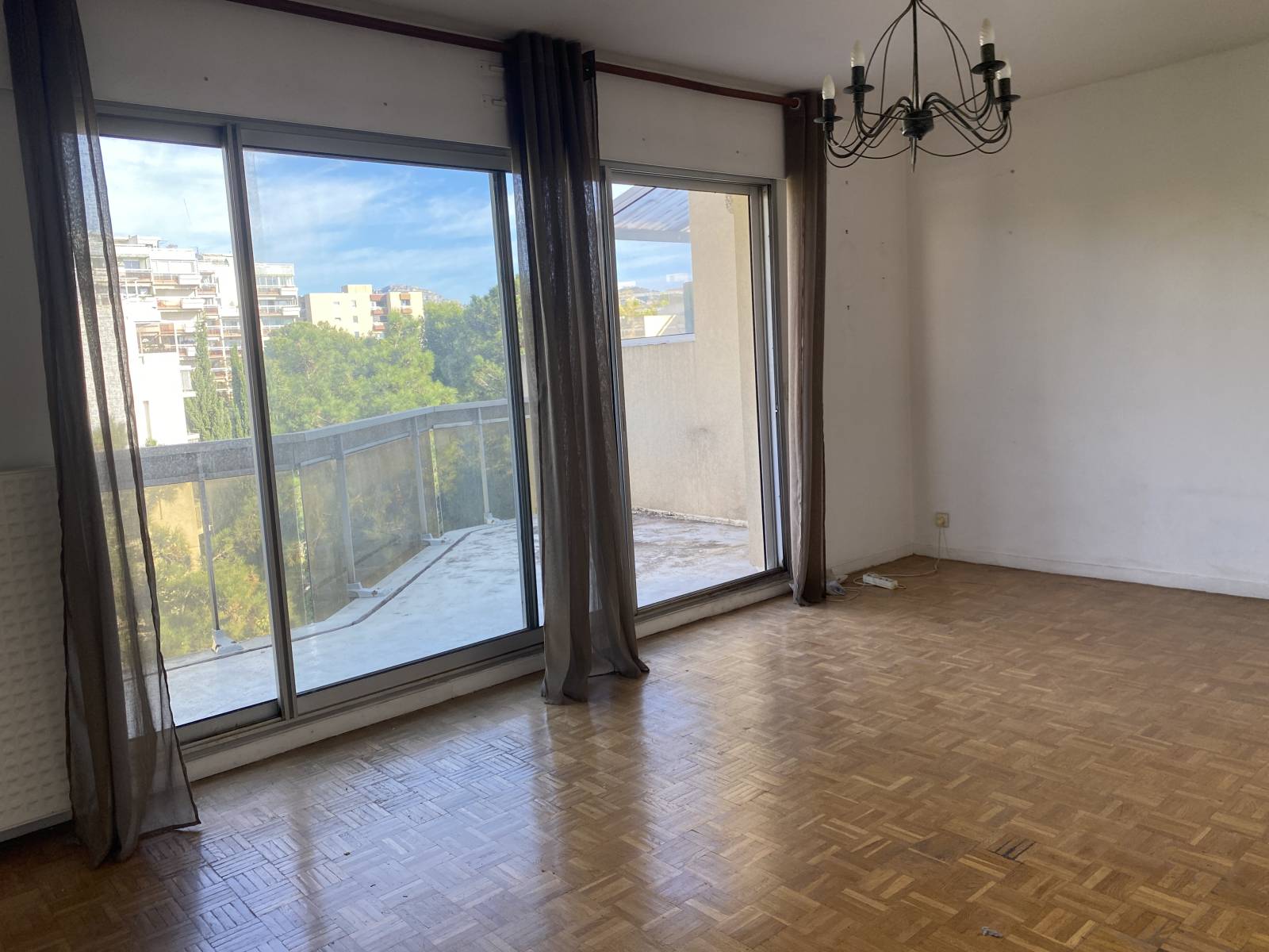 Rue Marie-Louise 13008 Marseille - Appartement T2, 51.89 m², composé d'une entrée, séjour ouvrant sur terrasse 10 m², cuisine séparée (US possible), une chambre avec rangements intégrés, salle de bains, toilettes séparés, cave. Au 4ème et dernier étage avec ascenseur d'une résidence très bien tenue, ce bien, à rafraîchir, dispose de vrais atouts. Quote-part charges copropriété trimestrielles : 341 €. Taxe foncière : 1150 €