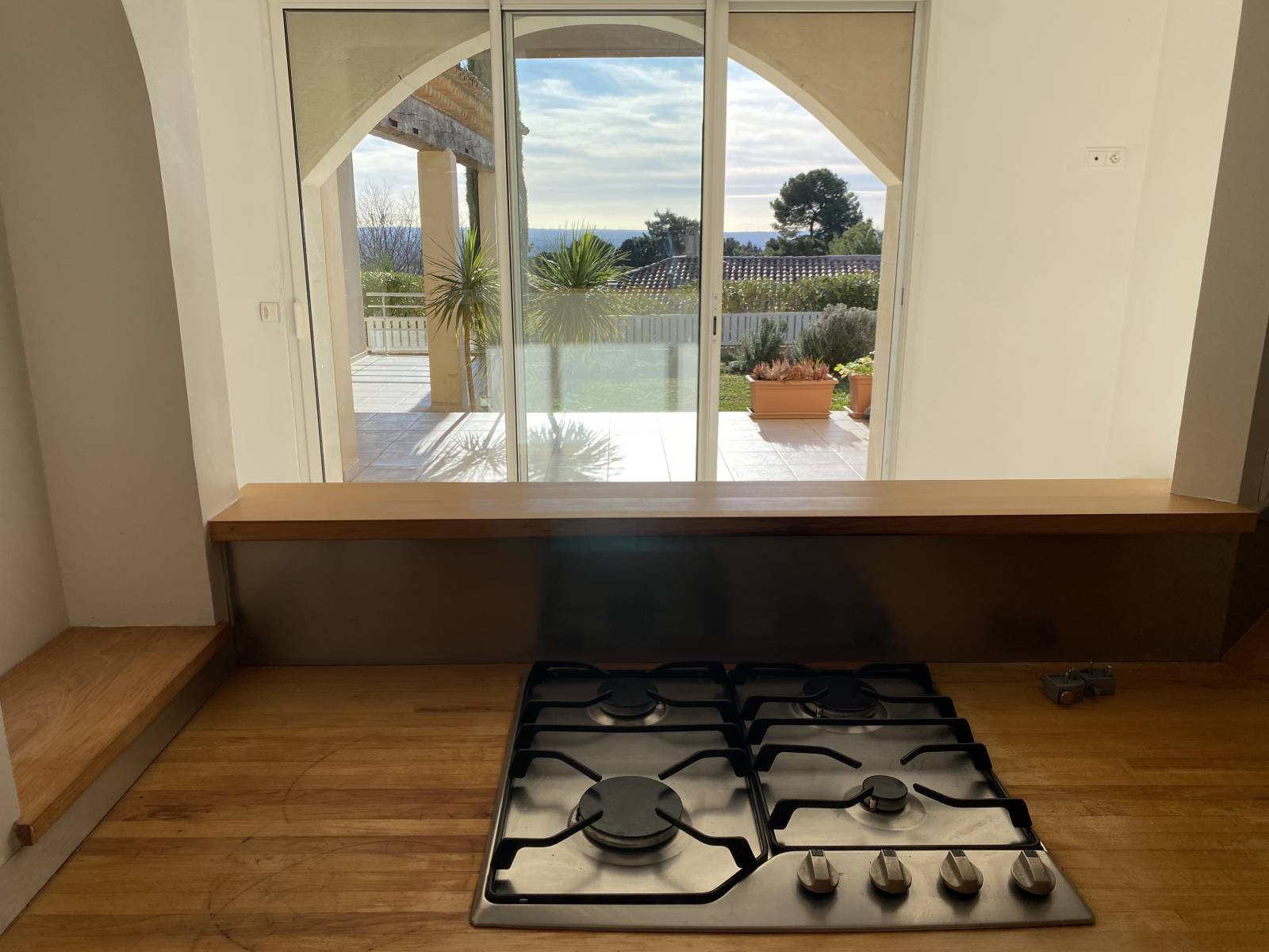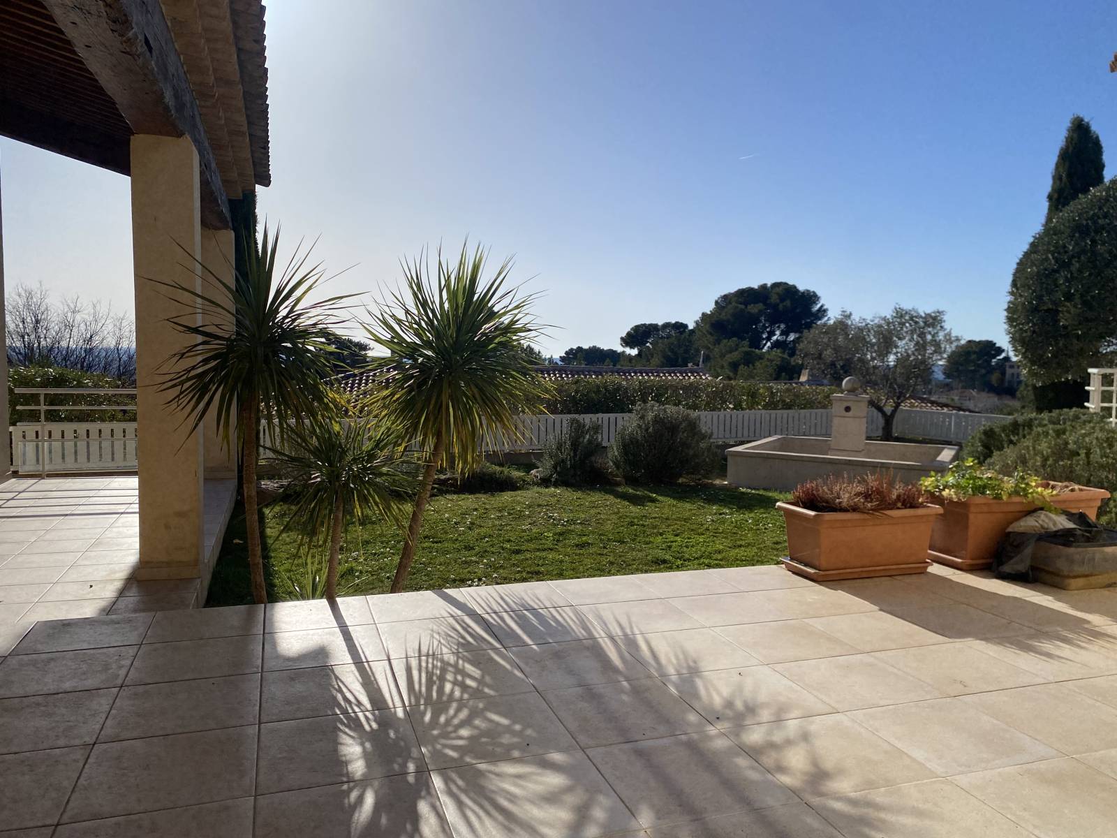 Domaine de la Marguerite, 13100 Aix en Provence - Villa de plain-pied 180 m² env., dans un domaine de standing, composée en son centre d'une entrée, séjour, cuisine. De part et d'autre des pièces de vie, une vaste suite parentale avec chambre, bureau, dressing, salle de bains et toilette séparés ; trois chambres, une salle de bains, une salle d'eau, deux toilettes séparés ainsi qu'une seconde cuisine (possibilité appartement indépendant). Un sous-sol de 255 m²abrite garage, chaufferie et buanderie. Cela laisse encore beaucoup de places pour d'autres voitures, une salle de sport, un home cinéma, etc … Sur 833 m² de terrain plat avec une très belle vue et piscinable, un bien remarquable par l'astucieuse distribution de ses pièces.